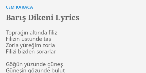 Cem karaca barış dikeni. 50 videos play all mix cem karaca barış dikeni lp youtube. Güneşi bizden sorarlar. Toprağın altında filiz filizin üstünde taş zorla yüreğim zorla. Es yüreğim es yüreğim.