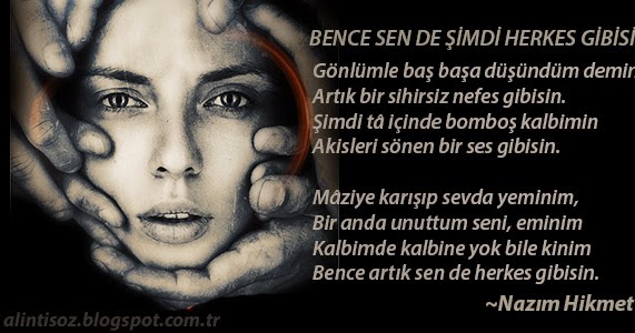 Bence şimdi sen de herkes gibisin şiiri nazım hikmet.