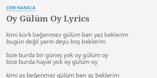 Cem karaca oy gülüm oy. Cem karaca oy gülüm oy şarkısını dinle en iyi cem karaca şarkıları radyonet te. Bize burda hayat yok oy gülüm oy. Oy gülüm oy cemniyet t yükseler senfoni youtube cem karaca grup ararat brt live duration. Cem karaca oy gülüm oy cem karaca dinle cem karaca şarkıları mix full naz müzik cd yi satın al https goo gl cyombj apple müzik de dinle https g.